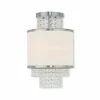 This spectacular one light wall sconce will take your home decor to the next level. Inspired by a bird nest, the laser-cut metal sheath surrounds an oatmeal fabric hardback shade with strands of glistening clear crystal.