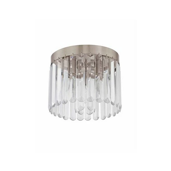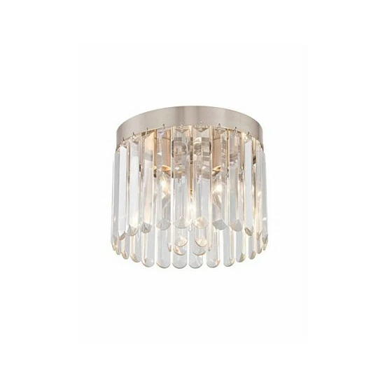 The Ashton three light flush mount emanates the 1920s casual style mixed beautifully with high sophistication. classical touches in the flush mount gives off an art deco feel with the prismatic crystals.
