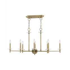 Add an aura of sophistication and elegance with the Bancroft transitional linear chandelier. The Bancroft collection delivers an inspiring and upscale mood to a new or remodeled kitchen or dining space.