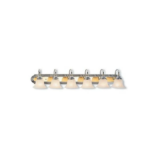 The Belmont bath bracket with polished accents and sweeping polished arcs framing elegant, alabaster swirl glass. The Belmont collection is warm and traditional and will easily become the focal point of your special room.
