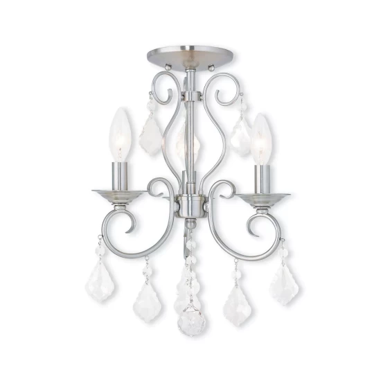 The sleek style and simple design of this semi flush mount, makes it easy to use in any space. This 2 light fixture features an oatmeal fabric hardback drum shade with a satin white hardened glass diffuser.