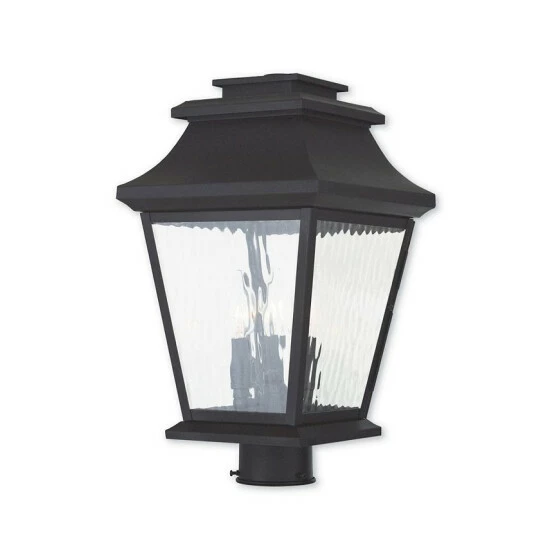 This outdoor post lantern light looks great near garage doors, entryways, and porches. Our handsome finish is paired with clear water glass and durable solid brass construction for a classic look and feel that works with any home.