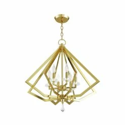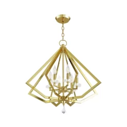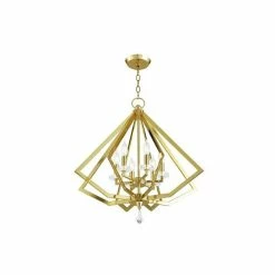 This six light polished brass chandelier allows you to explore a new facet of design. Shaped like a diamond, this contemporary six light chandelier is like jewelry for your home’s interior.