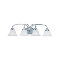 This four light bath vanity from the Edgemont collection is a fine and handsome fixture that features white alabaster glass.