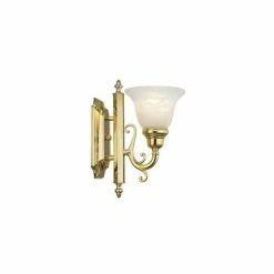The French Regency collection is an artistic blend of traditional styling and beautiful materials. The glass shades are a white alabaster, and the backplate incorporates multiple bevels. This fixture may be installed facing up or down.