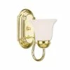 The French Regency collection is an artistic blend of traditional styling and beautiful materials. The glass shades are a white alabaster, and the backplate incorporates multiple bevels. This fixture may be installed facing up or down.