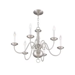 A classic look with understated elegance, this brushed nickel five light chandelier is made from steel and looks fabulous in the dining area or foyer.