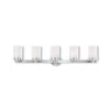 Our Lawrenceville collection features a retro industrial design, reminiscent of 19th century lighting. This six light bath vanity comes in a polished chrome finish and clear seeded glass.