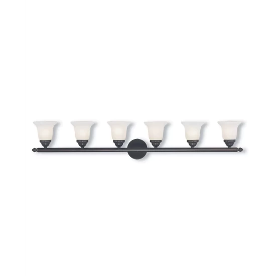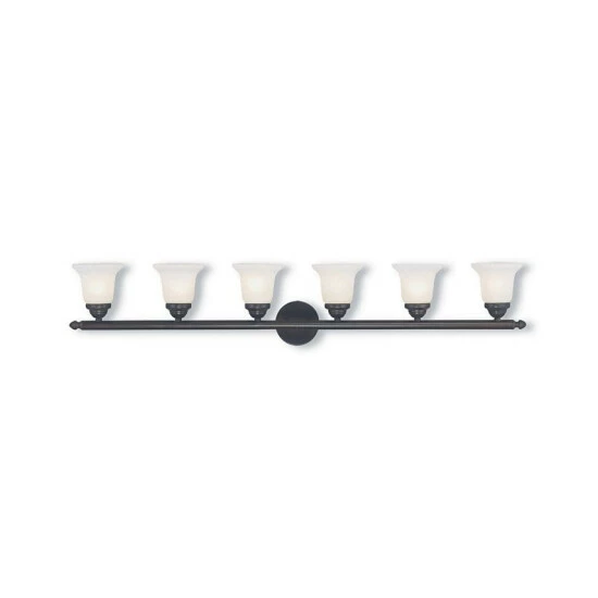This clean and classic bath fixture design is ideal for bringing a bright new style to your bathroom space. It features a bronze finish along with white alabaster glass.