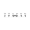 Bring a beautiful new look to your bathroom or vanity area with this charming five light bath fixture. A wide rectangular backplate supports five simple arms that hold five glass shades in hand blown satin opal white glass.