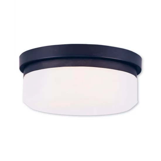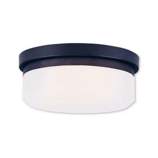 This flush mount from the Stratus collection offers bright lighting in a simple, unadorned style. Rounded hand blown satin opal white glass seems to float over a brushed nickel frame.