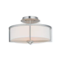 This semi flush mount light will instantly transform a room from dreary to chic. The beautiful finish on the frame complements the exquisite, hand crafted off white hardback drum shade and a satin opal glass diffuser guarantees a soft illumination.