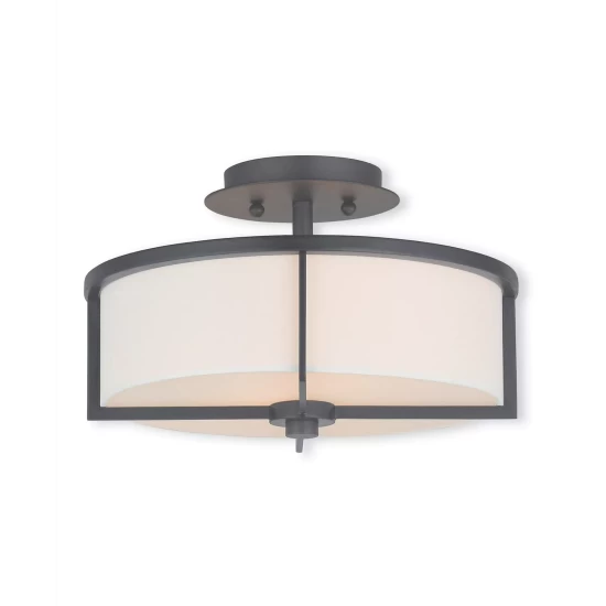 This semi flush mount light will instantly transform a room from dreary to chic. The beautiful finish on the frame complements the exquisite, hand crafted off white hardback drum shade and a satin opal glass diffuser guarantees a soft illumination.