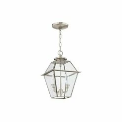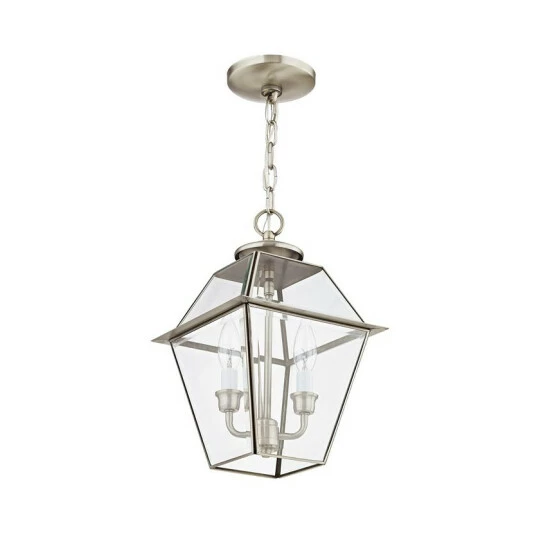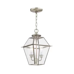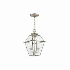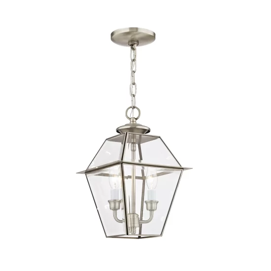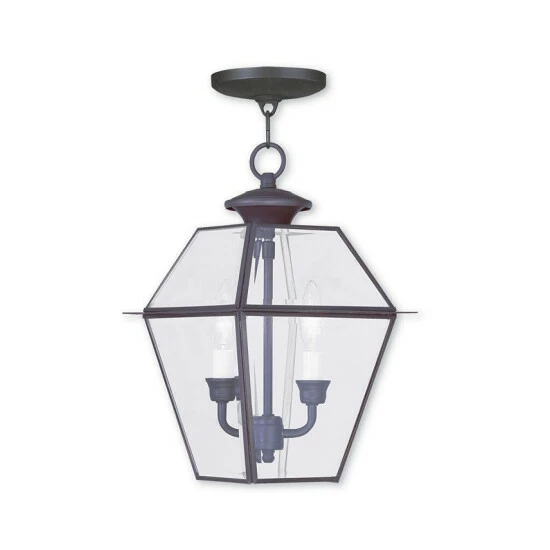 Inspired by the historic look and romantic feel of gas-burning lamps, our Westover collection is reminiscent of antique gas lights. This solid brass piece features two light behind large panes of clear beveled glass.